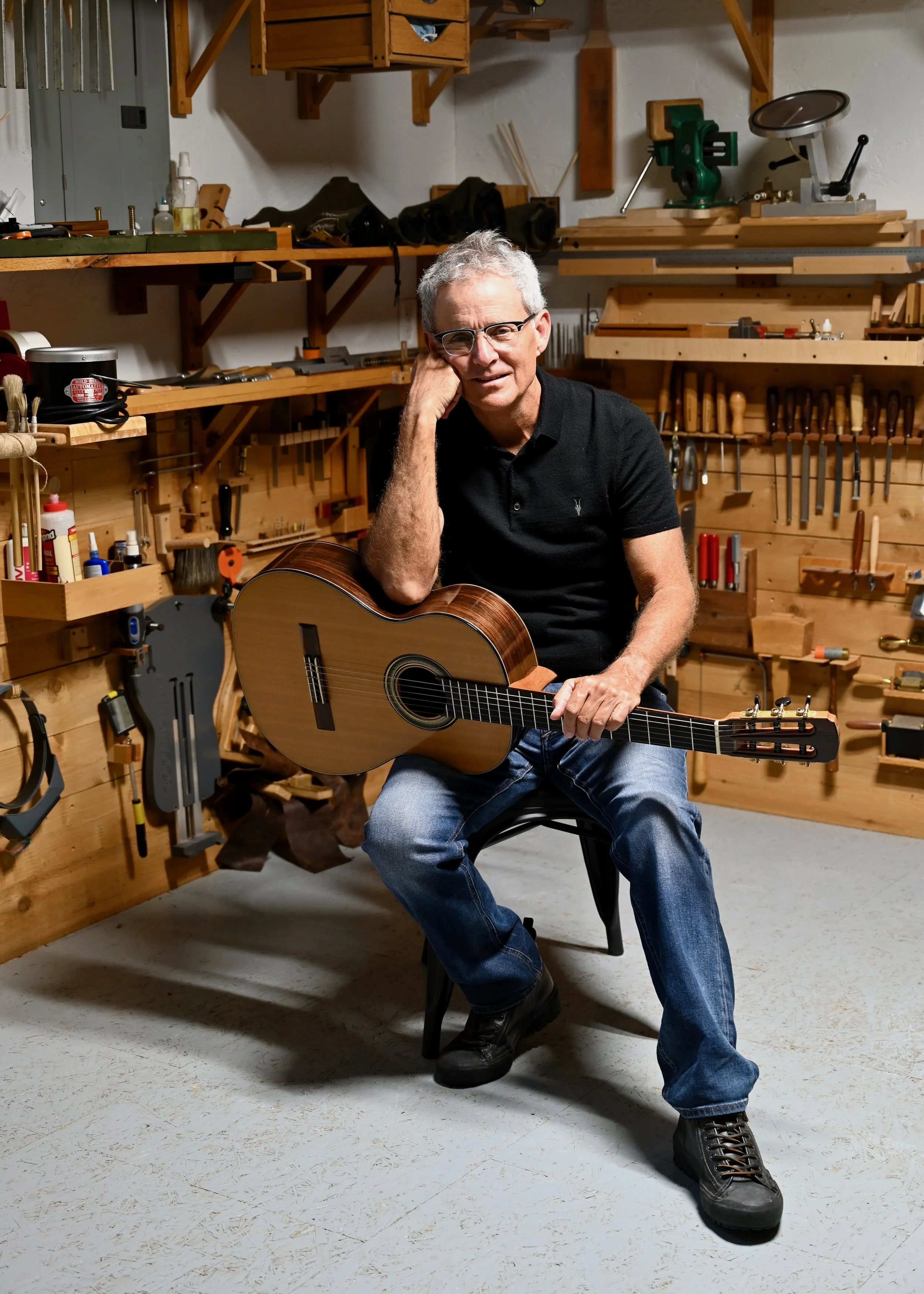 When I’m not building guitars, I delight in spending time under the stars with my telescope and dogs, Feynman and Seven, it’s a vitamin for creativity and imagination. I like zoning-out on long endurance runs to exhaustion. I enjoy playing guitar but I’m not a guitarist. I pass hours designing, writing, and thinking abstractly about the physics of the guitar.